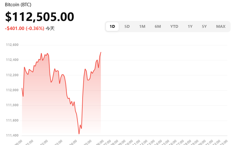当前价格约 $112,505,日内微跌约 –0.35%。