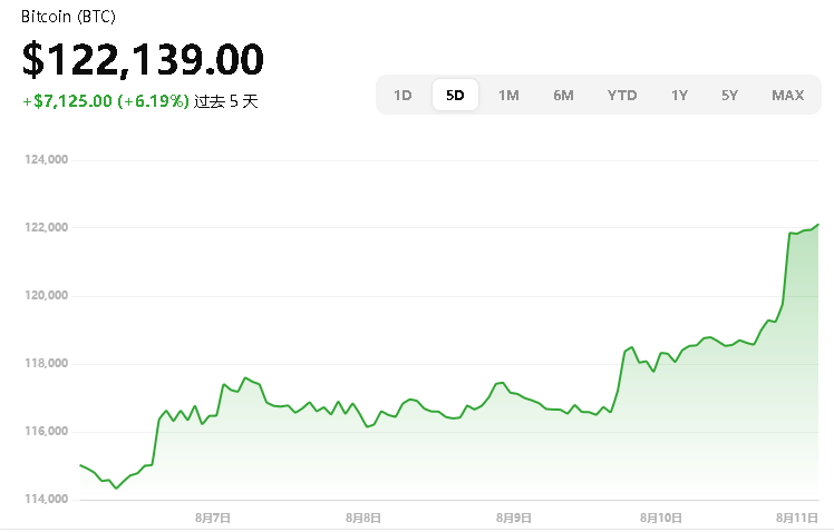 当前价格:约 $122,139,日内上涨约 3.7% 。