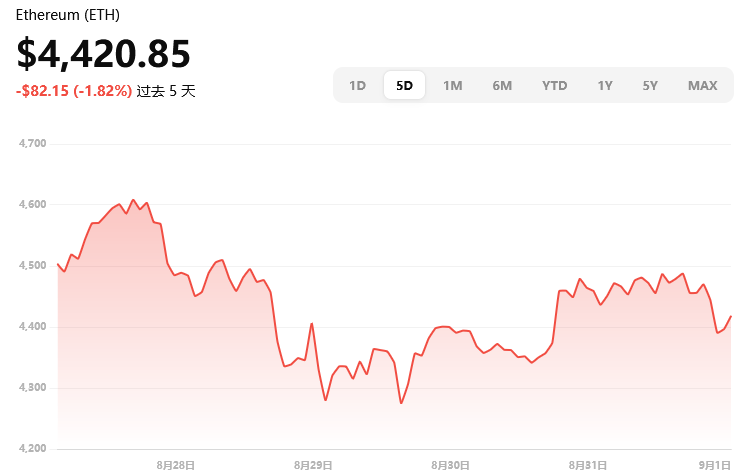 当前价格约 $4,420.85,日内略跌约 0.56%。